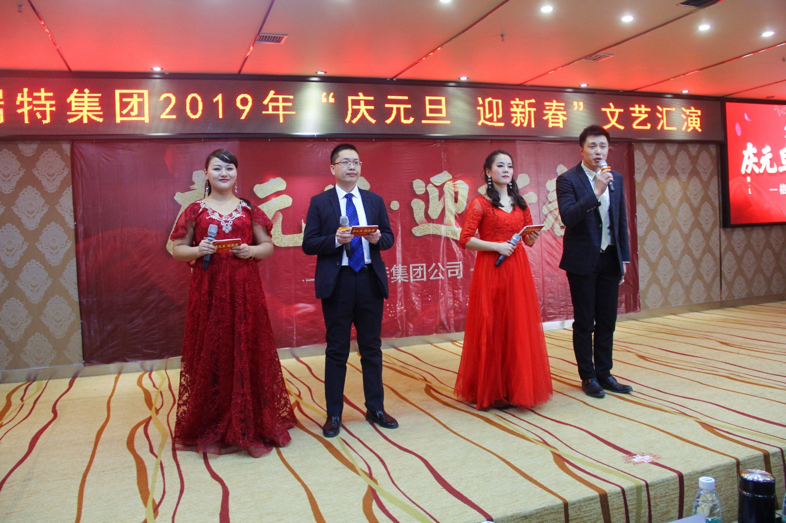 在2018年12月31日,在元旦節(jié)來臨之際,格瑞特集團公司一年一度的慶元旦、迎新春活動在新興大酒店舉行。旗下的格瑞特酒莊有限公司、格瑞特酒業(yè)有限公司、裕恒商貿(mào)有限公司、鑫瑞農(nóng)業(yè)開發(fā)有限公司、中森木業(yè)有限公司共同出席了本次活動。