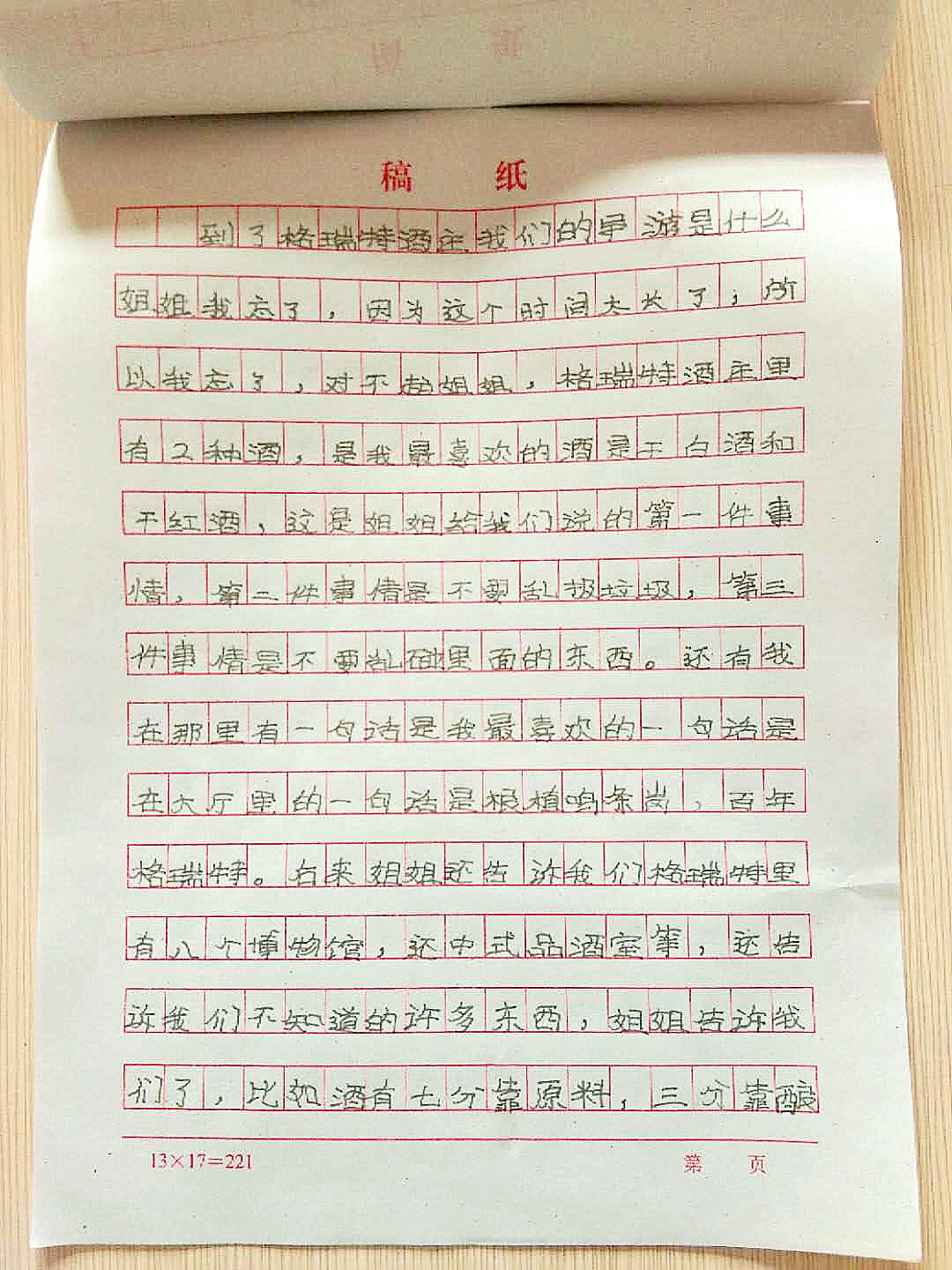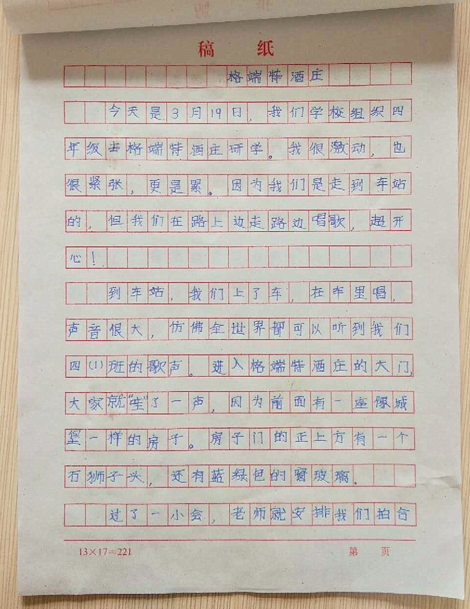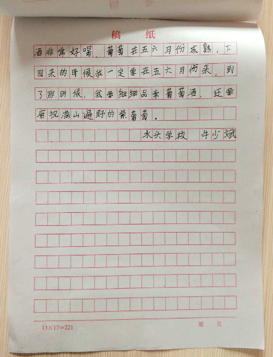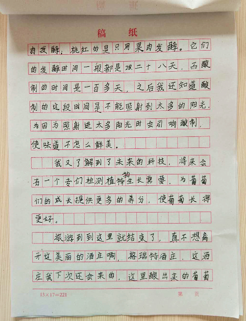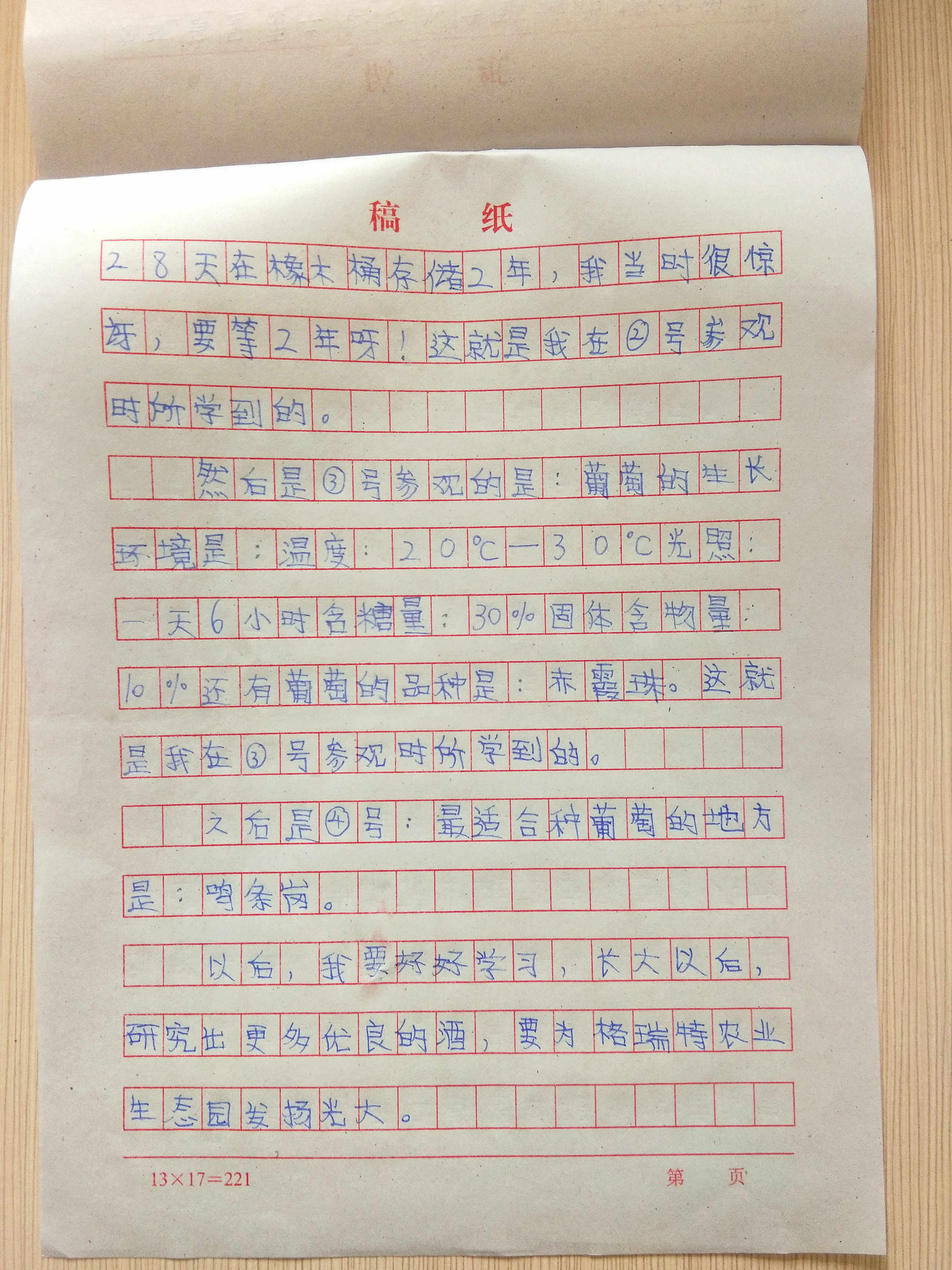 怎么樣!可愛(ài)的同學(xué)們?cè)趨⒂^格瑞特酒莊之后,寫下了一篇篇觀后感。這稚嫩的字體,用心的言語(yǔ),表達(dá)了他們對(duì)格瑞特酒莊 的滿意與祝福。展信如晤,見(jiàn)字如面,一紙信箋,如此之遠(yuǎn),又如此之近。