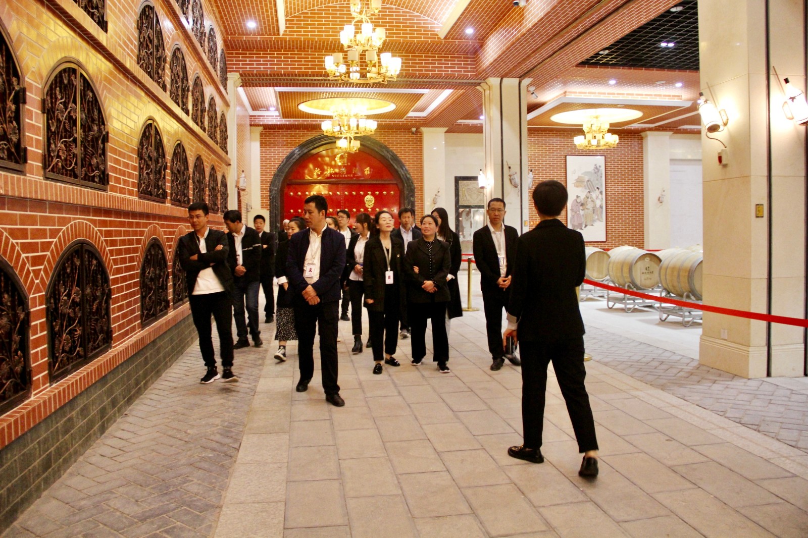 合影結(jié)束之后,專業(yè)講解員帶領(lǐng)嘉賓們來到了接待中心,接待中心整體以歐式建筑風(fēng)格為主,內(nèi)設(shè)有產(chǎn)品展示區(qū)、商務(wù)洽談室、專業(yè)紅酒品鑒區(qū)以及冷餐制作區(qū)等。